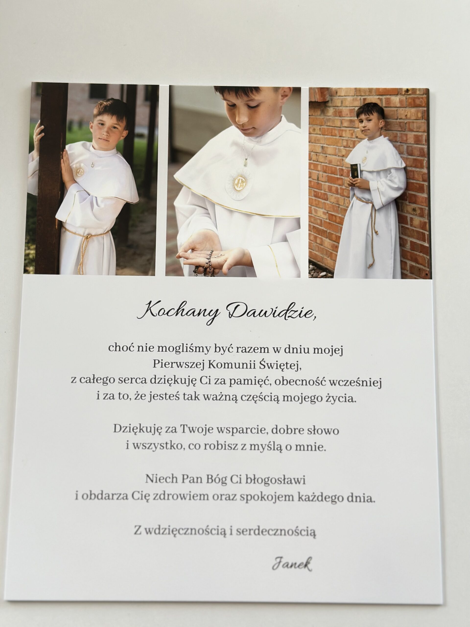 w pięknej, eleganckiej formie ze zdjęciem i indywidualnym tekstem.